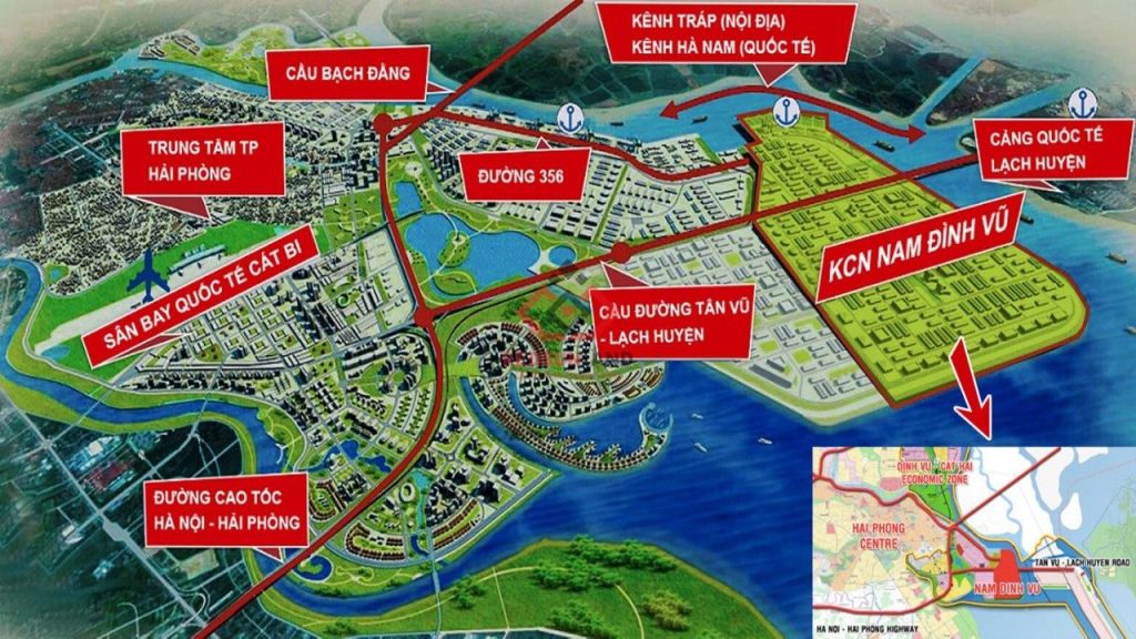 - Cách Cảng nước sâu Lạch Huyện chỉ khoảng 10-15 km, thuận lợi cho vận chuyển hàng hóa xuất – nhập khẩu.